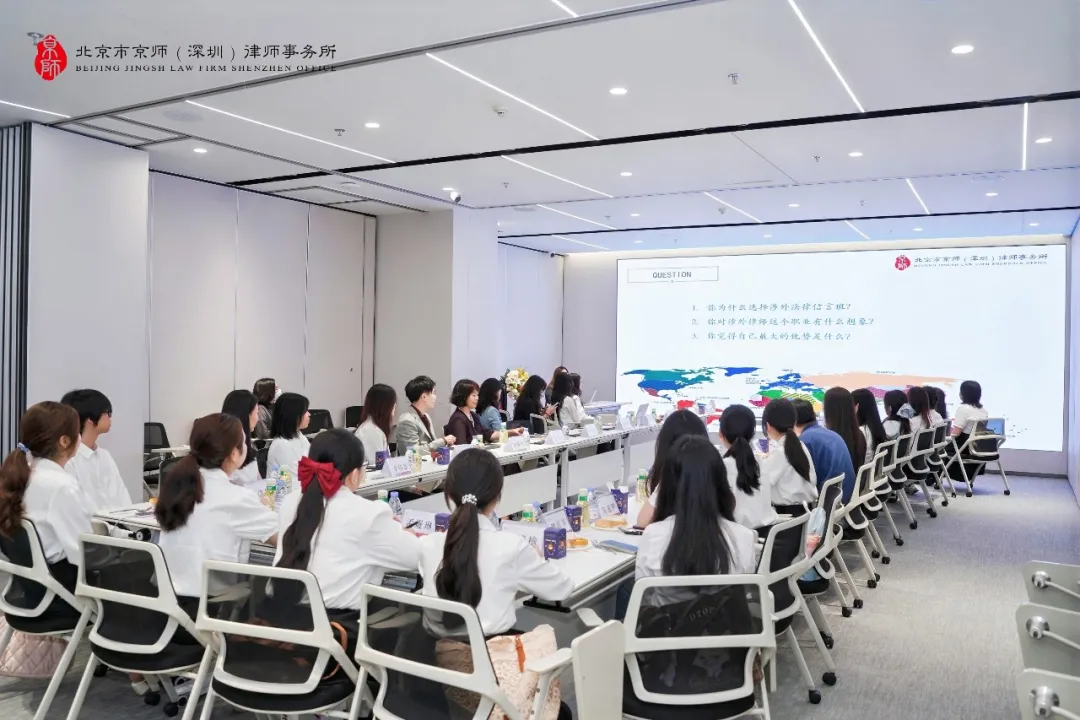 此次“走进律所·涉外法律职业体验团日”活动,不仅让深信院应用外语学院的同学们近距离触摸到涉外法律实务的脉搏,也进一步深化了京师深圳律所与高校之间的协同育人合作。京师深圳律所始终致力于为青年学子搭建从课堂到职场的桥梁,通过开放参观、职业分享、互动交流等形式,助力学生拓展视野、明确方向。未来,律所将继续加强与高校的联动,共同培育具备国际视野与实务能力的涉外法治人才。