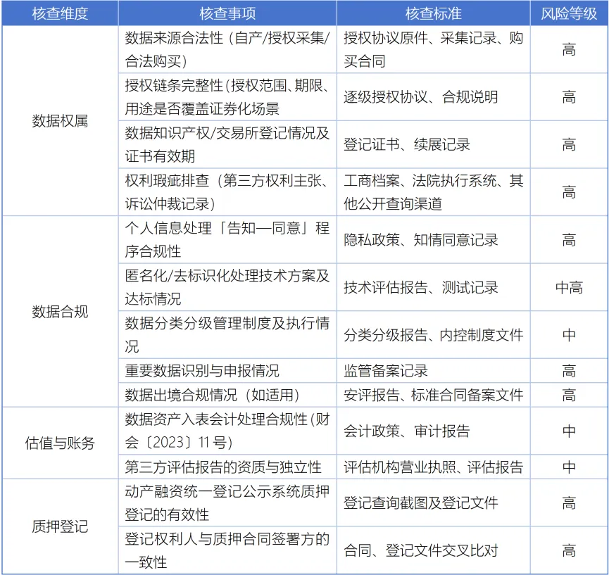 (一)尽职调查:数据资产专项核查清单